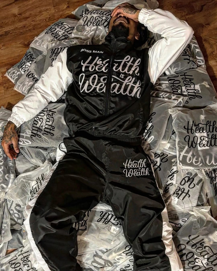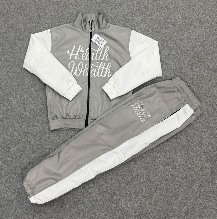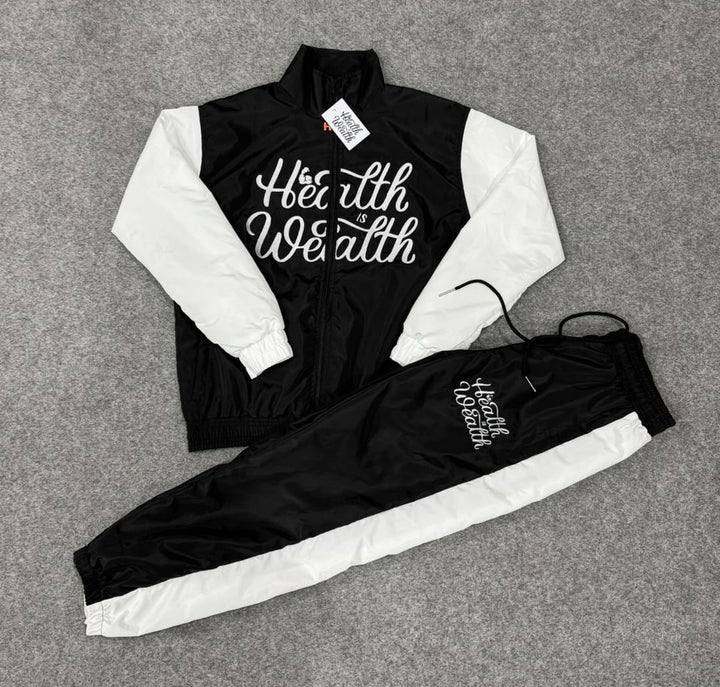 Print/ Details: Sleek black/grey finish featuring bold “Health is Wealth” lettering for a striking statement.
